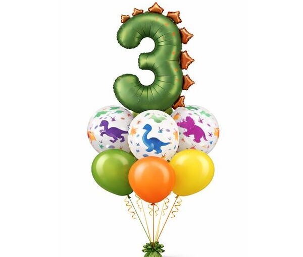 Helium Foil balloon Numbers 0-3 Dinosaur, 92cm, mix