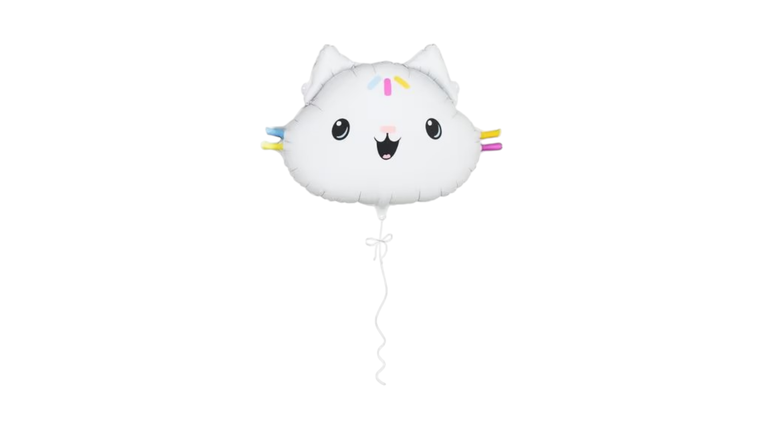 Featuring a cute cloud-shaped kitty face with colorful whiskers, this balloon is delivered filled with helium and includes a matching ribbon, making it ready to float and delight instantly. Perfect for birthdays, themed parties, or magical decorations! ✨🎉