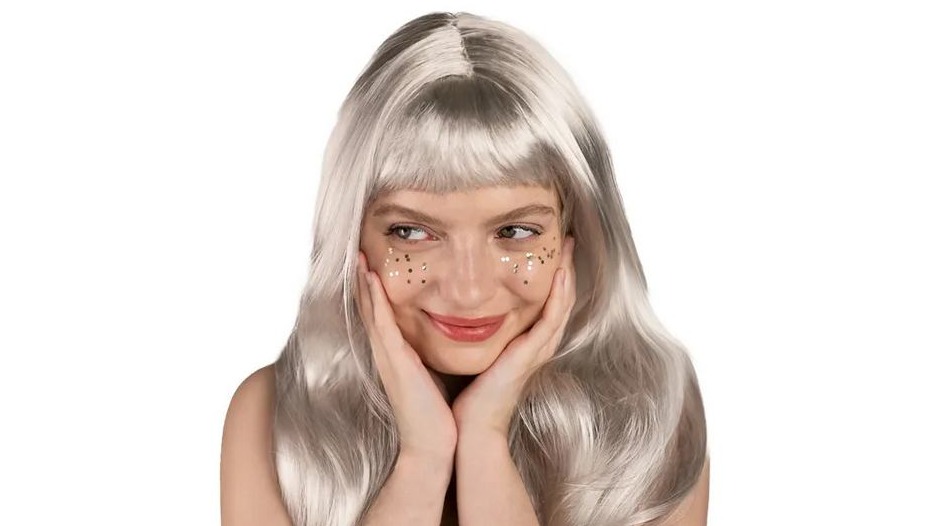 A bold and eye-catching wig that adds instant drama and shine to any outfit!