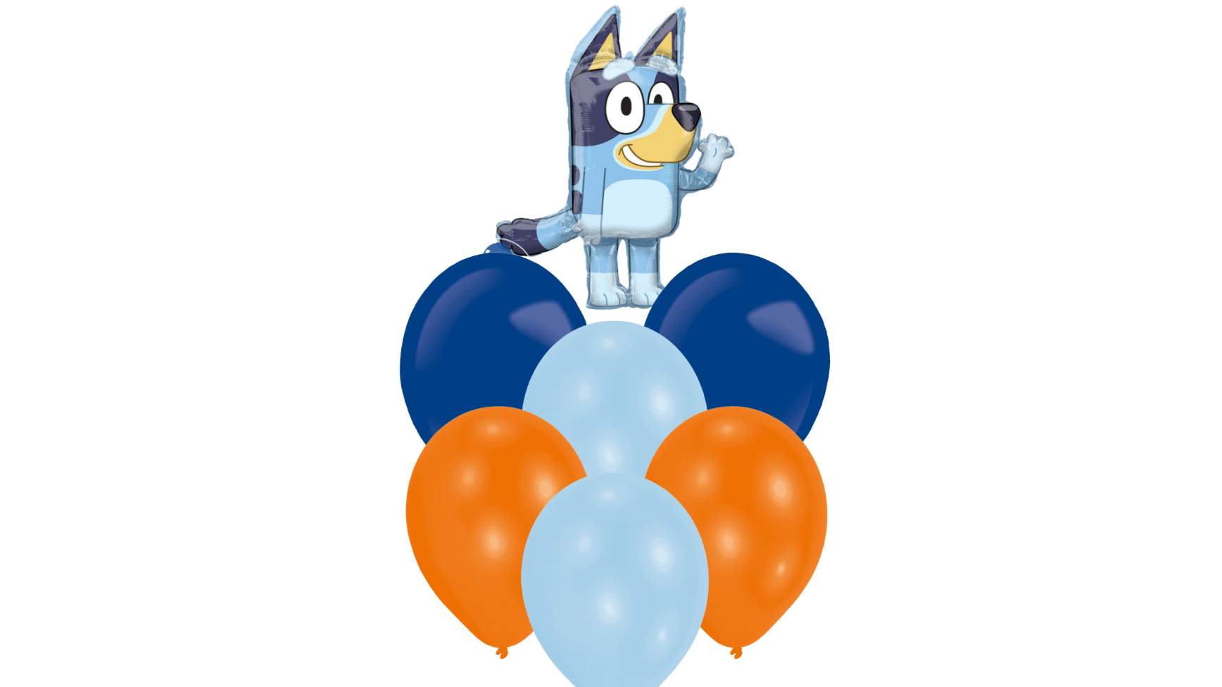 Bring the fun and adventure of Bluey to your party with this delightful balloon bouquet! Perfect for any fan of the beloved Blue Heeler pup, this cheerful arrangement is sure to brighten up the celebration. 🎉🐶