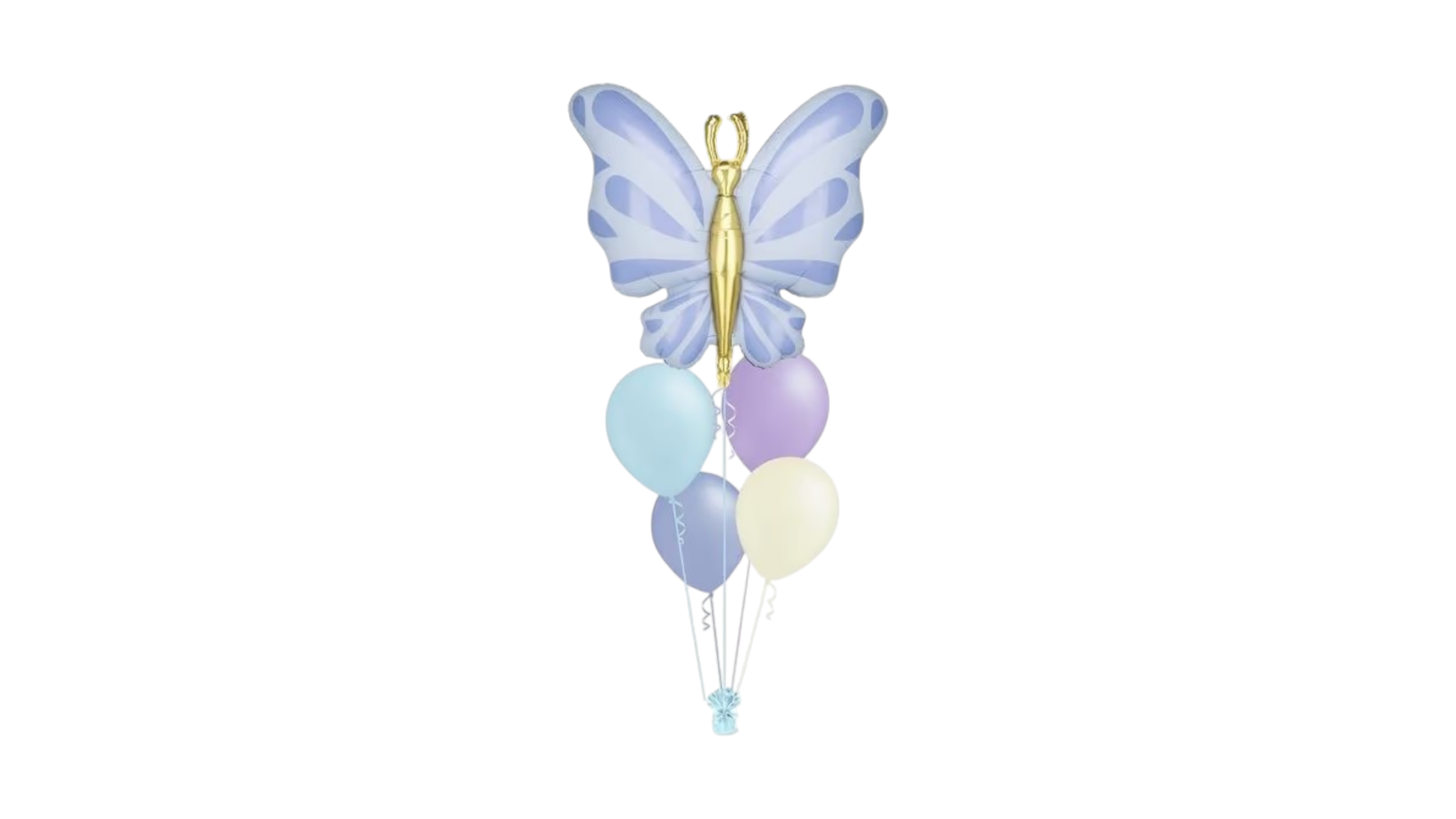 Bring a touch of magic and elegance to any celebration with this dreamy butterfly balloon bouquet! Featuring a stunning butterfly foil balloon with soft lilac wings and a shimmering gold body, this design is perfect for birthdays, baby showers, garden parties, or any whimsical event. 🌸💜
