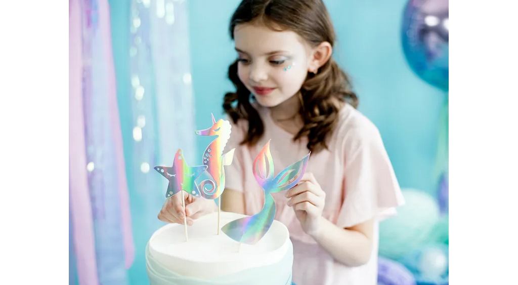 Add a shimmering splash of under-the-sea magic to your cake! These iridescent mermaid toppers arrive flat for a fun DIY assembly, then stand tall to crown your dessert with ocean sparkle.